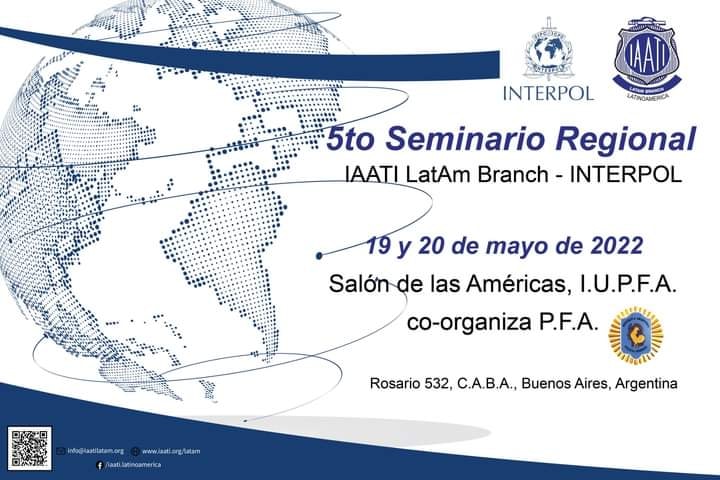 Los días 19 y 20 de mayo se desarrollará en el Instituto Universitario de la Policía Federal Argentina (IUPFA) el 5to Seminario IAATI Latinoamérica organizado en conjunto con INTERPOL y la Policía Federal Argentina. Contaremos con la presencia de especialistas en delitos relacionados con vehículos de todo el pais, Chile, Brasil, Colombia, EE. UU., Inglaterra, Francia y otros países de Sudamérica.