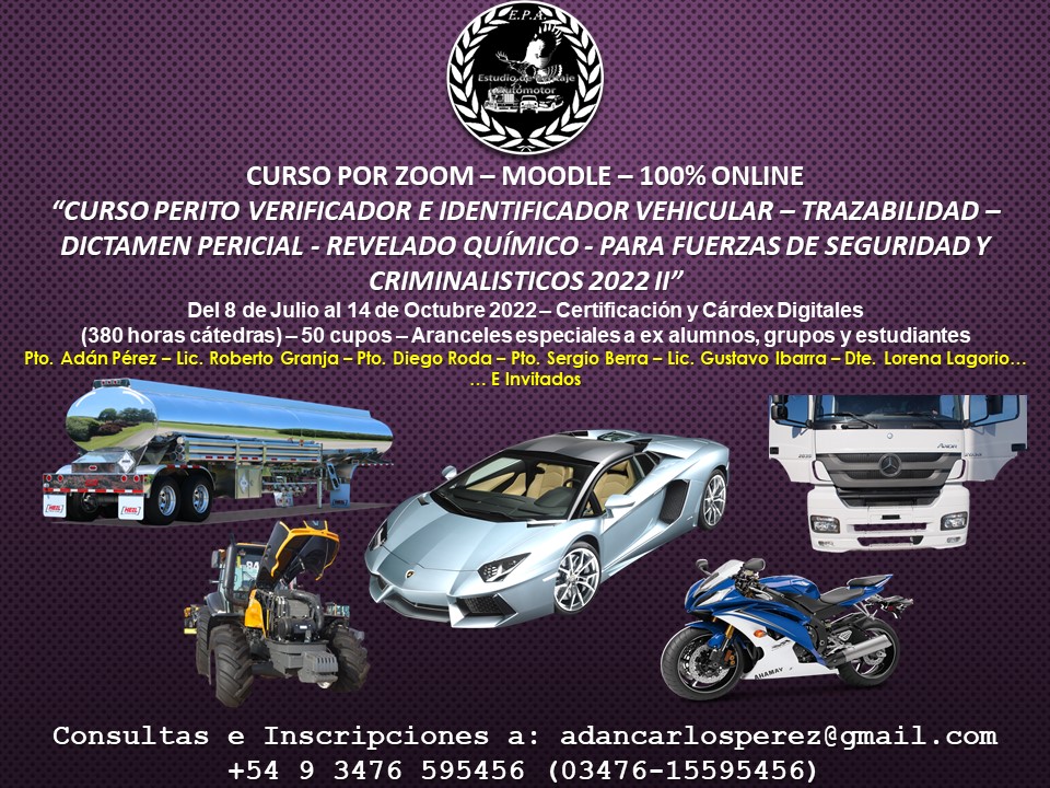 “CURSO PERITO VERIFICADOR E IDENTIFICADOR VEHICULAR PARA FUERZAS DE SEGURIDAD Y CRIMINALISTICOS”